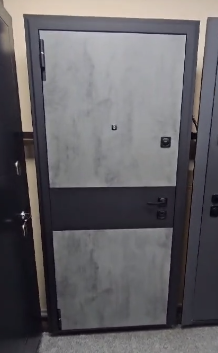 Входная дверь (ВИДЕО) Лофт Бетон Черный Муар МДФ Бетон темный - Бетон светлый — купить в Казани по цене 30 800 руб. — RosDoor (Сталь-сервис)